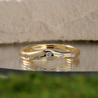 A sculptural wave ring crafted in solid sterling silver and finished with luminous 18K gold plating. Accented with scattered cubic zirconia, the organic irregular band delivers a fluid, modern silhouette with subtle sparkle, designed for effortless everyday wear or refined stacking. ABOUT THIS ITEM Crafted from genuine 925 sterling silver Finished with premium 18K gold…