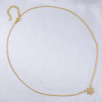$79 Original price was: $79.$47.40Current price is: $47.40.A refined expression of symmetry and light, this eight-pointed star necklace is set with meticulously placed diamond-like cubic zirconia that catch the light from every angle. Finished in warm gold over sterling silver, it delivers a clean, modern elegance designed for everyday refinement. About This Item Crafted from solid 925 sterling silver Finished with 18K…