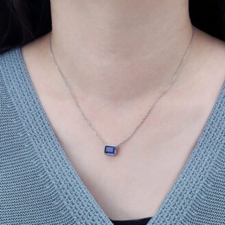 $99 Original price was: $99.$59.40Current price is: $59.40.A refined statement of modern elegance, this emerald-cut sapphire pendant necklace is designed to bring depth, color, and quiet sophistication to everyday wear. The clean lines of the geometric stone are balanced by a delicate chain, creating a piece that feels timeless yet contemporary. Minimal yet striking, this necklace is ideal worn alone for a…
